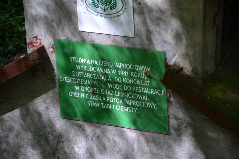 Studnia na cieku Paprociowym powstała w 1941 r. Zasilała dawniej „Restaurację Obora” oraz leśniczówkę. Obecnie studnia nie jest używana ze względu na duże zanieczyszczenie wody, głównie manganem i żelazem.
